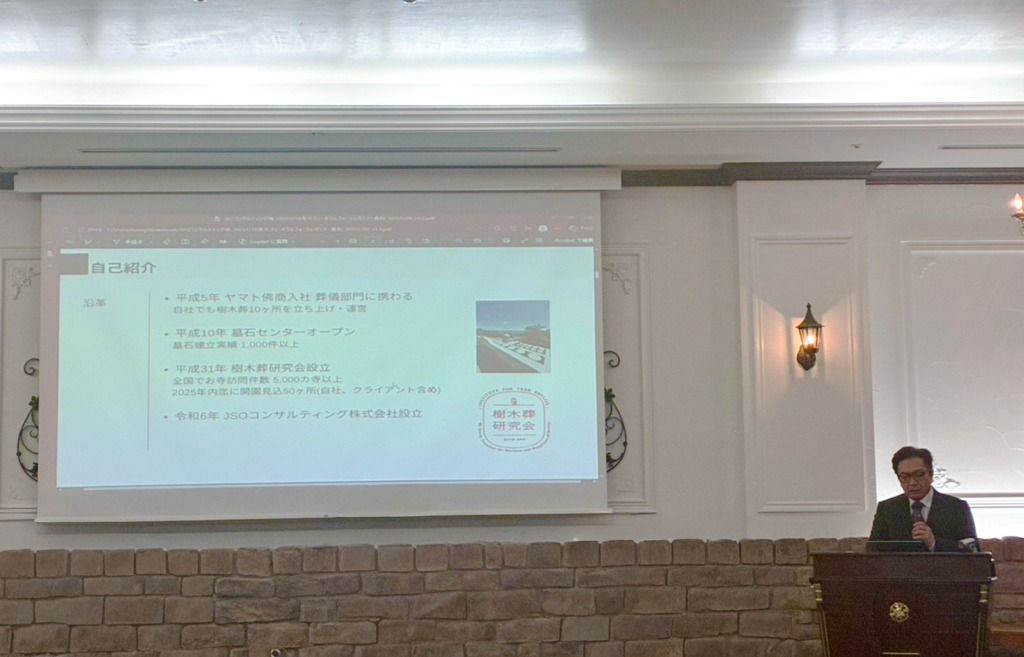 本セミナーでは「葬儀社と樹木葬事業のシナジー」をテーマに、なぜ今葬儀社が樹木葬を事業化すべきなのかを講義いたしました。
