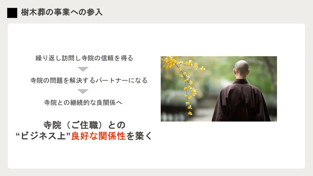 寺院の立場を理解せずに提案を行えば、関係性は長続きしません。現場で実際に寺院と向き合ってきた経験を交えながら、「提案前に何を整理すべきか」「どの順序で対話を進めるべきか」といった実務視点をお伝えしました。